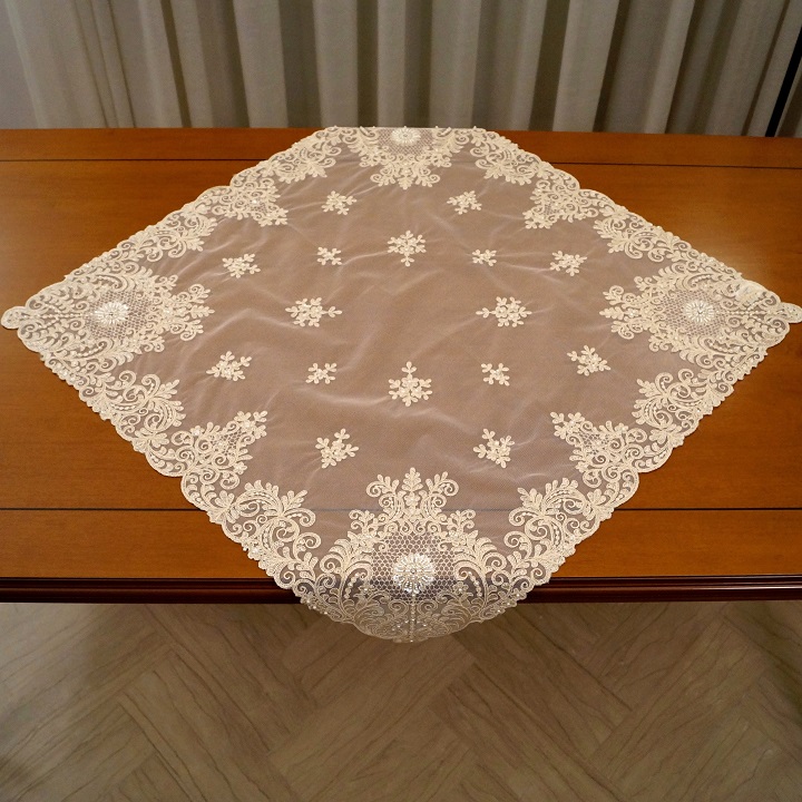 Καλυψώ Τραπεζομάντηλο Τετράγωνο με Κέντημα Μηχανής πάνω σε Τούλι 85cm