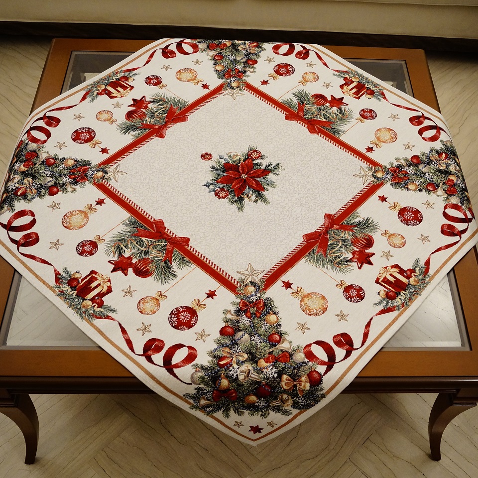 Υπέροχο χριστουγεννιάτικο τραπεζομάντηλο που θα διακοσμήσει χαρούμενα και εορταστικά το χώρο σας.